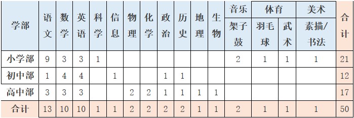 寧德北大培文學(xué)校師資力量雄厚、教師師德高尚,結(jié)構(gòu)合理,專業(yè)能力強(qiáng)。目前學(xué)校擁有一批全國著名特級教師、骨干教師、學(xué)科帶頭人、優(yōu)秀班主任,還挑選了部分畢業(yè)于重點(diǎn)大學(xué)的優(yōu)秀畢業(yè)生、研究生擔(dān)任助教,廣東知名校長楊啟富先生擔(dān)任學(xué)校校長。
