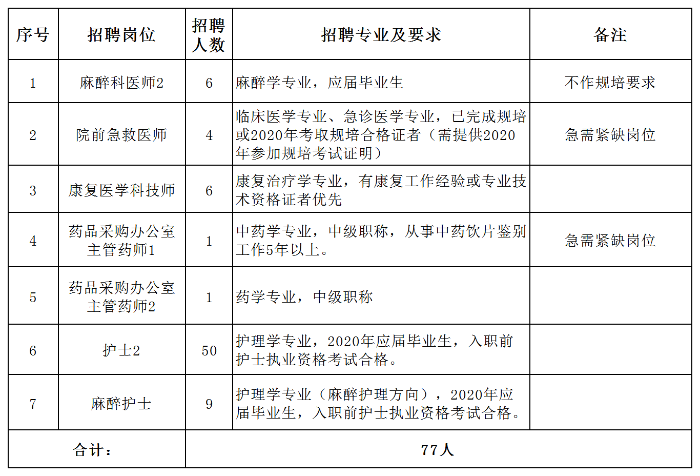 2.崗位要求需取得住院醫(yī)師規(guī)范化培訓(xùn)合格證書、護(hù)士資格等證書的,入職前因個人原因無法提供的,醫(yī)院有權(quán)按照不符合招聘條件取消聘用資格。