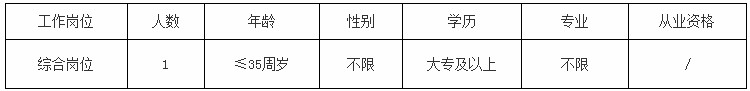 面向社會(huì)招聘編外人員1名,其中:綜合崗位1名,條件要求如下: