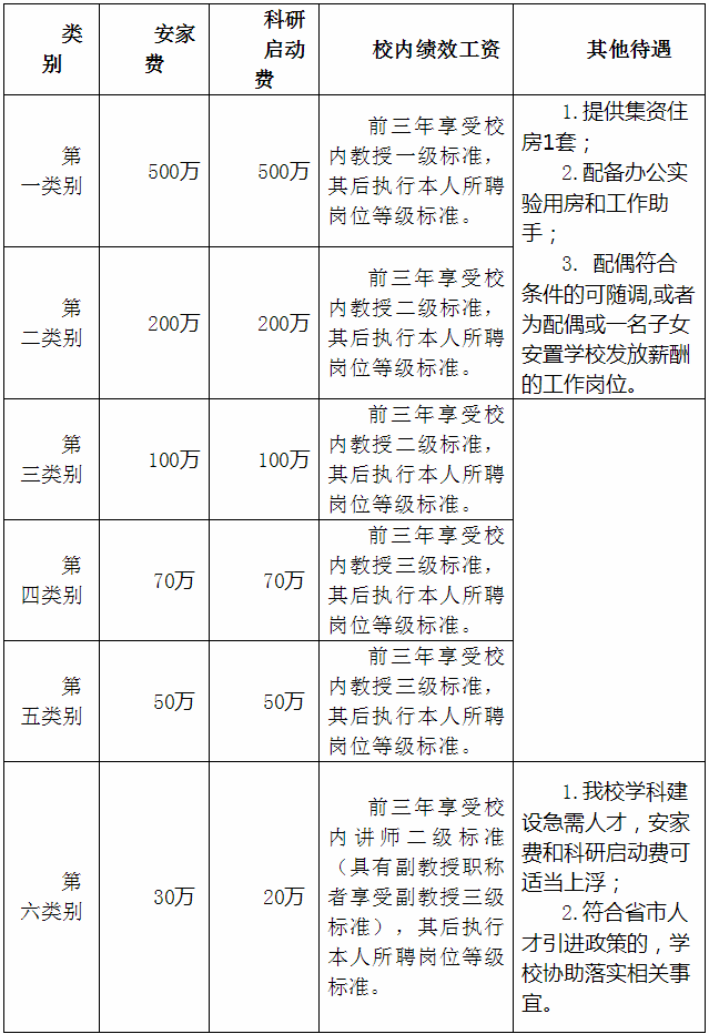 ?。ㄒ唬┤氁M(jìn)的各類別人才享受待遇如下: