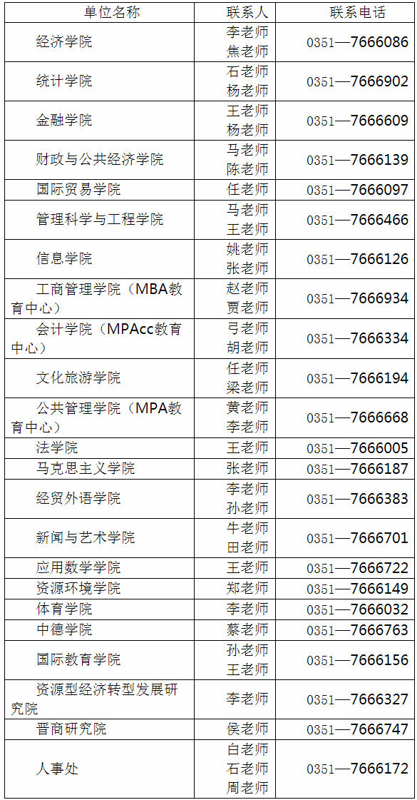 各學(xué)院和單位具體聯(lián)系方式如下: