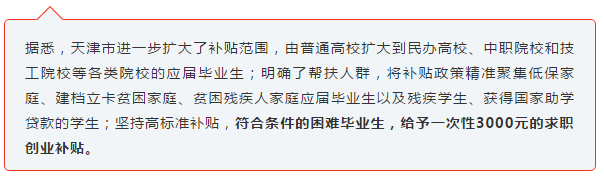 天津:困難畢業(yè)生可獲3000元求職補(bǔ)貼